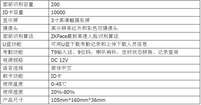 中控VF30人臉識別考勤機